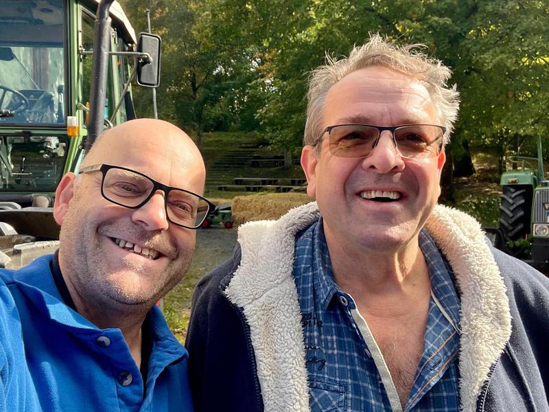 3 Club-Mitglieder mit 2 Traktoren auf der